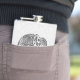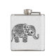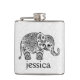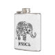 Black retro paisley floral elephant illustration over white circles pattern background. customizable monogram.
