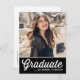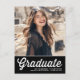 Announce your graduation to family and friends with this customizable graduation postcard. It features a white retro script typography on a black background. Personalize this black and white graduation announcement postcard by adding your photo, name and school name. This photo graduation announcement postcard is perfect for high school or college graduations.