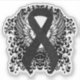 A black awareness ribbon with wings on a graphic filigree pattern. Support survivors and support awareness. The black ribbon stands for Mourning, Accident Awareness, Amish Support Awareness, Anti-Terrorism Awareness, Gang Prevention Awareness, Gun Control Awareness, Melanoma Awareness, Narcolepsy Awareness, POW / MIA Awareness, Primary Biliary Cirrhosis Awareness, Sleep Apnea Awareness, Sleep Disorders Awareness, Trauma Awareness. May is Melanoma / Skin Cancer Awareness Month, Sleep Apnea Awareness Month, and Sleep Disorders Awareness Month.