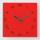 Black Roman Numbers On Red wccnt Square Wall Clock