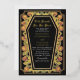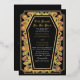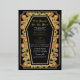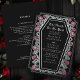 Make a bold statement of eternal love. This gothic wedding invitation features ‘Till Death Do Us Part’ in a coffin-shaped frame, adorned with thorns, roses, real foil accents against a black background. Perfect for a hauntingly romantic celebration! Personalize the text, font, and background colour to suit your design preferences. Matching Items in our shop for a complete party theme.