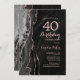 Black and rose gold agate 40th birthday party invitation. Elegant modern design featuring watercolor agate marble geode background, faux glitter rose gold and typography script font. Trendy invite card perfect for a stylish women's bday celebration. Printed Zazzle invitations or instant download digital printable template.