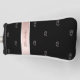 An elegant blakc background, with a rose gold coloured ribbon. Personalize and add your monogram letters, initials and name. Blush and dark rose gold coloured letters. The name is written with a modern hand lettered style script. The monogram as a background pattern.