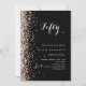 For an elegant 50th (or any age) birthday party. A classic black background. Decorated with rose gold confetti. Personalize and add a name and party details.