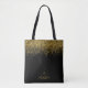 Black gold glitter monogram script tote
