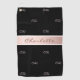 Black background, with a rose gold ribbon. Personalize and add your monogram letters, initials and name. Blush, rose gold coloured letters. The name is written with a modern hand lettered style script. The monogram as a background pattern.