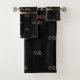 Stylish black with a rose gold, faux metallic looking frame. Personalize and add your monogram letters, initials and name. Rose gold coloured letters. The name is written with a modern hand lettered style script. The monogram as a background pattern.