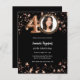 A modern, stylish photo invitation for a 40th birthday party. A black background, decorated with rose gold stars. Personalize and add your party details.