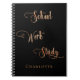 A chic black background. Personalize and add a name. Golden text: School, work, study
