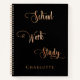 A chic black background. Personalize and add a name. Golden text: School, work, study