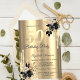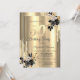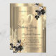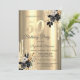 A modern, chic, and glamourous with gold glitter drips, and black roses on a gold background.