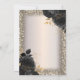 A modern, chic and glamorous invitation with elegant string lights, and black roses.