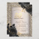 Black Roses,Lights Glitter Frame 50th Birthday Invitation