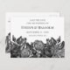 Get out the word about your upcoming wedding with these easy to customize postcards. These save the date cards feature an antique engraving style illustration of roses in black and white set against a plain white background. There's plenty of room for your information on the front of these postcards with space for additional information on the reverse side.