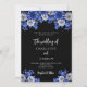 Black royal blue florals wedding invitation