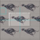 This fabric features a reproduction of my original coloured pencil drawing of a black greyhound on grey background.