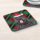Fun coaster set for the person who loves their Black Russian Terrier dog. This one wears a Santa hat for a stylish approach to the holiday season, and sits cutely against a festive red and green plaid background to decorate your home or office with seasonal pet lover joy.