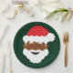 Black Santa Christmas paper plates featuring Santa Claus with a brown skin tone and wearing a red and white suit.