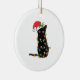 Black Santa Cat Tangled Up In Lights Christmas Ceramic Ornament