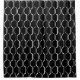This shower curtain has an art deco design of white half circles connect with lines on a field of black.