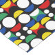 Seamless Repeat Geometric Black Scandinavian Nordic bauhaus Style Mid century Red, black, yellow, blue and green circles and semi circle shapes Decorative Modern Pattern Design on white background
