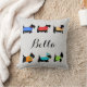 Customize this decorative throw pillow to show your love of Scottish Terrier dogs and personalized with your dog's name or other words in the centre. The colourful design is on both sides of the pillow. These whimsy, cute and adorable Scotties are wearing various colourful dog sweater coats or tees and one has a toboggan hat. The colours are red, lavender, purple, yellow, turquoise teal blue, lime green and orange with paw prints, stars, stripes, checks, and snowflake patterns. These whimsical and trendy dogs are original art by Phyllis Dobbs and will melt the heart of a dog lover. The background is a trendy grey or grey to blend with any home decorating colour or style. These pet Scotties are both individually and on colourful blocks with borders for coordinating products. All are fully customizable to make it your own!