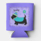 Enjoy drinking your favourite beverage with this fun and whimsical beverage cooler kookie. Personalize with your dog's name, your name or other words. Your dog love will shine with this unique one of a kind kookie with a cute black terrier dog dressed for the occasion. This whimsical black Scottie Terrier is wearing a turquoise aqua or teal blue sweater coat decorated with a lavender and lime green accents. The Scottie dog is wearing a toboggan of the same colours for a turquoise and lavender stripe with dogs on the cuff. The background is lavender and purple with tonal purple snowflake accents to make a stylish, trendy and decorative cooler. A turquoise teal blue flower is above the dog. This cute, cuddly and trendy dog is original art by Phyllis Dobbs and will melt the heart of a dog lover. This Scottie is one of a series of 6 Scotties and all are fully customizable to make it your own! Coordinate with matching products.