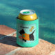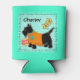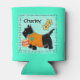 Enjoy drinking your favourite beverage with this fun and whimsical beverage cooler kookie. Personalize with your dog's name, your name or other words. Your dog love will shine with this unique one of a kind kookie with a cute black terrier dog dressed for the occasion. This whimsical black Scottie Terrier is wearing an orange tee shirt with turquoise teal trim with a yellow and red ball is beside him or her. The background is turquoise teal blue stripe that makes stylish, trendy and decorative cooler. Two yellow flowers are above the dog. This cute, cuddly and trendy dog is original art by Phyllis Dobbs and will melt the heart of a dog lover. This Scottie is one of a series of 6 Scotties and all are fully customizable to make it your own! Coordinate with matching products.