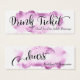 have a drink on us, good for one adult beverage, bar ticket for one alcoholic beverage per ticket, bar ticket for wedding reception, bar drink tickets for wedding party, artsy bar ticket typography, good for one alcoholic beverage each, watercolor background, pink and raspberry