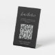 Black share the love QR Code pedestal sign. Place these signs at your wedding reception tables so guests can scan to upload the photos they took at your wedding reception to your album or social media. To generate a new QR code on the design, add the URL of your online wedding album or social media handle in the area provided, using the "personalize" feature. A brand new QR code will then be added to to the design.