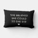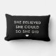 Modern statement lumbar pillow that will be a perfect accent to any room. This motivational pillow features modern typography with a black background. She believed she could, so she did. Other colours are available.