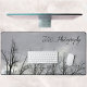 Black silhouettes of tree branches against a cloudy grey sky gives this photographic Grey desk mat its chic gothic appeal. Personalize this desk accessory with a Name or your own text.