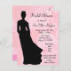 Graphics include a black silhouette of a bride with a pink floral background. Plenty of customizable text available to add your party information. Buy in bulk and save!