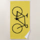 This beach towel design features a black silhouette of a bicycle. It could make a great gift for somebody who really likes bike riding.