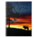 Black Silhouette of Wolf, Birds and Tree in Sunset Notebook