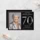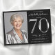 Black Silver 70th Birthday Invitation. Make a bold statement with this black and silver milestone birthday invitation, designed for those who appreciate modern elegance. Featuring sleek solid typography against a rich black backdrop, the shimmering silver accents bring a touch of sophistication to your celebration. Perfect for an upscale evening or formal affair, this invitation sets the tone for a stylish and unforgettable milestone event. Personalize it with your party details and let the chic design speak for itself as you prepare to toast in true elegance.