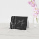 The left-hand edge of this elegant flat wedding thank-you card features a black watercolor agate design trimmed with silver faux glitter. The text is in silver grey script and sans serif fonts on a dark slate black background.