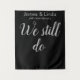 stylish elegant renew vows photobooth, fancy photo booth backdrop tapestries, personalized couple names photo prop, we still do vow renewal, custom 25th anniversary party backdrop, 25 years anniversary party banner, silver wedding anniversary for them, anniversary backdrop twenty fifth party, rustic modern calligraphy 5th backdrop, black and silver ceremony 10th