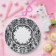 Black Silver Chic Damask Floral Swirls Personalize Paper Plate