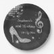 Women's personalized, elegant custom 60th birthday party celebration paper plates. Beautiful black and silver templates for a woman's 60th year old birthday. These plates have a funky retro disco mirror ball, glamourous printed image rhinestones / diamonds glitter, sequins, jewels sparkle high heels stilettos shoes, and glittery musical note / music note with sparkles on a classy black with white lights and sparkles background. Chic, cute, girly, modern paper plates with trendy, fashionable colours. These cool, groovy, stylish, sophisticated, pretty party plates are decorated / printed on one side only. Perfect plates for dinner dance dancing event parties. PLEASE NOTE: All products on Zazzle have flat printed images. If you need any assistance customizing your product please contact me through my store and I will be happy to help.