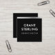Make a bold first impression with this sleek square business card featuring clean white typography on a deep black background, accented by a refined silver foil strip. With a built-in QR code and minimalist layout, it's designed for professionals who value both style and functionality.