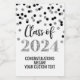 Graduation party custom mini wine bottle labels class of 2024 with black and silver glitter pattern confetti.