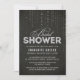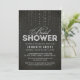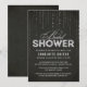 This lovely Bridal Shower invitation design by The Spotted Olive™ features a black chalkboard look background with an image of sparkly gems streaming from the top and the words "Bridal Shower" stylishly typeset featuring the word "Shower" filled with an image of silver glitter. PLEASE NOTE: THIS DESIGN ONLY FEATURES A PRINTED IMAGE OF GLITTER; THERE IS NO PHYSICAL GLITTER USED OR INCLUDED; THERE ARE NO EMBELLISHMENTS. Copyright 2013-Present | The Spotted Olive™ | All Rights Reserved