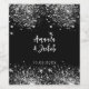 A classic black background decorated with faux silver glitter, sparkles. Personalize and your names and the wedding date.