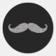Black Silver Glitz Moustache Classic Round Sticker
