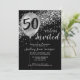 Moderne Elégant Glam noir argent gris Parties scintillant étincelante Balloon 50e anniversaire Invitation