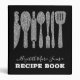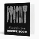 Modern Glam Elegant Black Silver Grey Glitter Kitchen Utensils Family Recipe 3 ring binder
