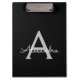 Black Silver Modern Script Girly Monogram Name Clipboard