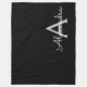 Black Silver Modern Script Girly Monogram Name Fleece Blanket