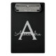 Black Silver Modern Script Girly Monogram Name Mini Clipboard